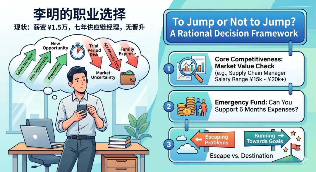 以前跳槽,最多就是工资低一点,适应期长一点。现在不一样了——有房贷、有孩子、有父母要养,一旦在新公司试用期没过,断供三个月,整个家庭的现金流就可能崩掉。