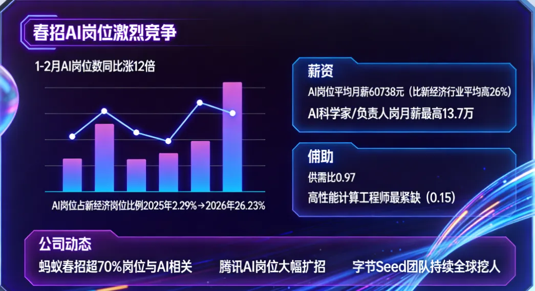 AI岗位占新经济岗位比例:2025年2.29% → 2026年26.23%