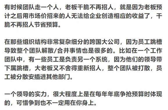 你看,加薪这个事情多麻烦,还不如你走人算了。再说跳槽,跳槽者较高的工资其实是对跳槽者所承担风险的补偿。