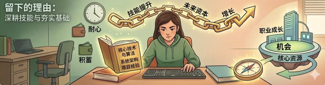 别因为一时的情绪冲动就离职,也别因为害怕未知就一直内耗。技术够硬、有好机会、薪资给到位,就大胆跳;能力不足、机会尚在,就沉下心攒实力。