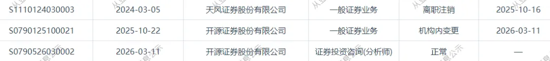 >天风证券一研究员跳槽开源证券,并晋升为分析师