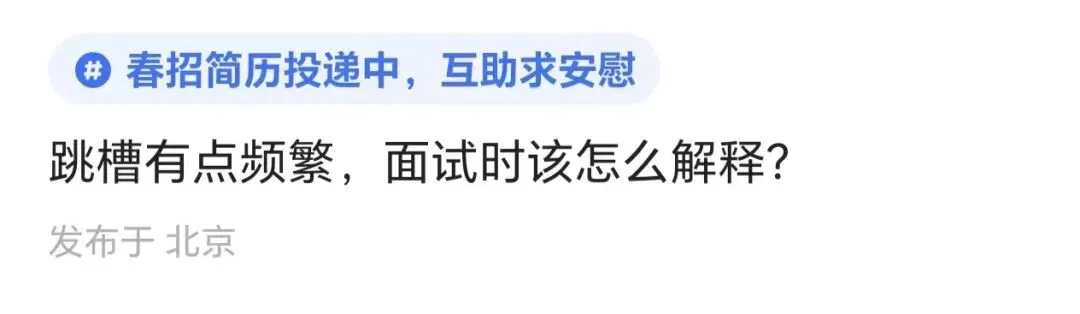 金三银四求职旺季,看到有网友为跳槽频繁而烦恼,“跳槽频繁”成了很多求职者的心头刺:明明每一步都有理由,却总被面试官贴上“不稳定”“流动大”的标签。其实,跳槽频率从来不是求职的主要判断依据,更关键是看你怎么把“频繁”演变“成长”。