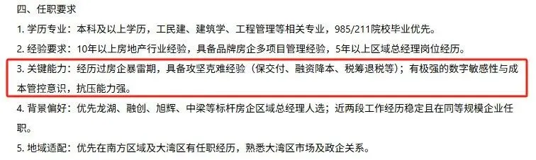 二、经验要求:10年+地产行业经验,5年+房企区域总经理经验