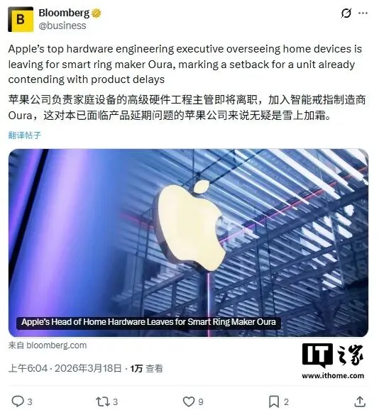 3 月 18 日消息,苹果公司家居硬件业务再遭人事变动。