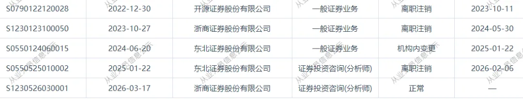 >东北证券一首席分析师跳槽浙商证券