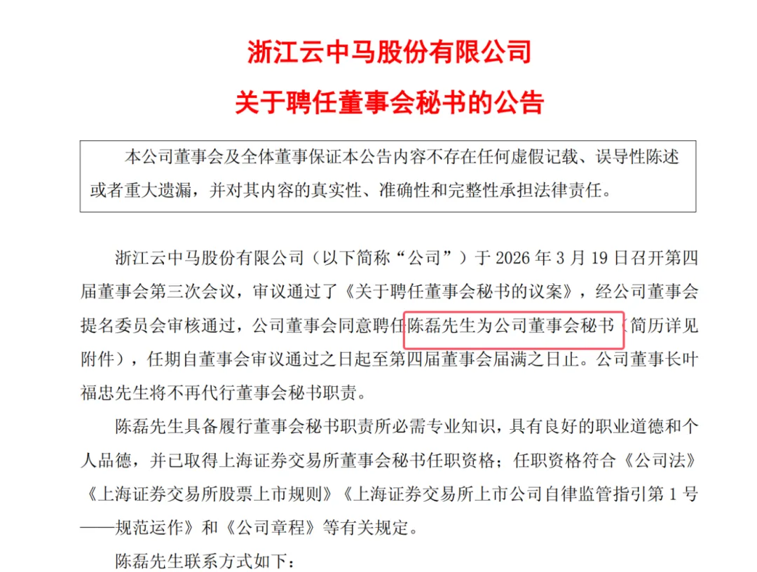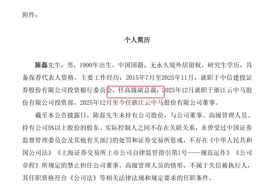 跳槽到自己 IPO保荐签字公司又一个!原中信建投投资银行高级副总裁陈磊去年到云中马后现在变董秘!
