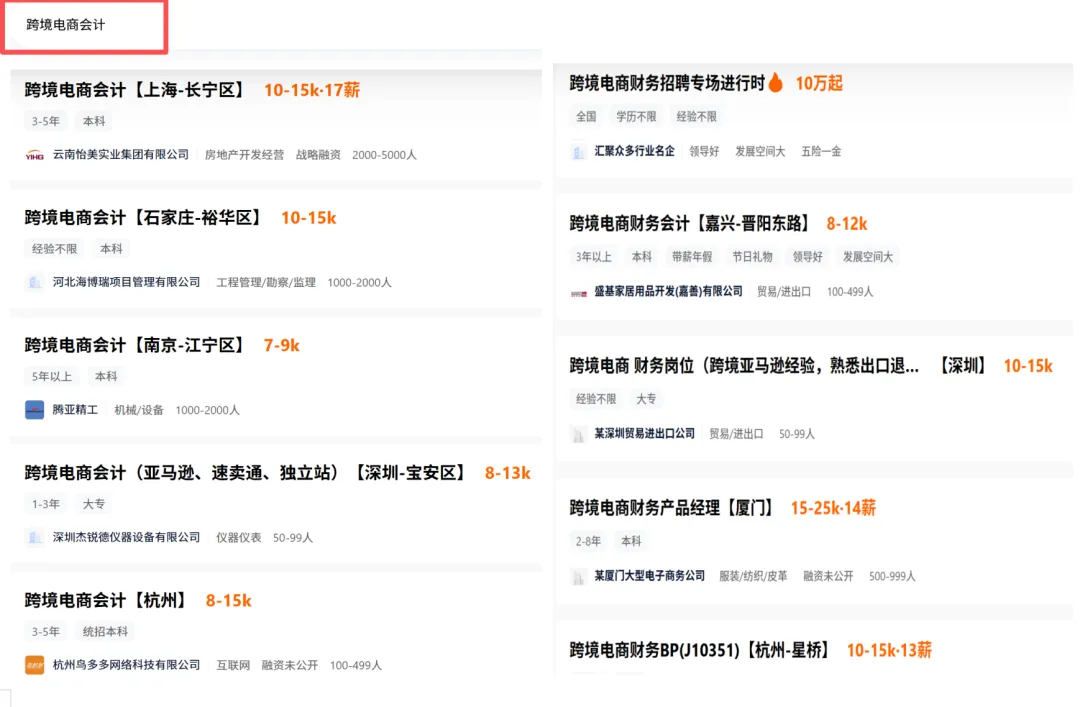 那时我关注到跨境电商行业兴起,我发现招聘2-3年经验的跨境财务的年薪普遍远超传统和普通高新财务。