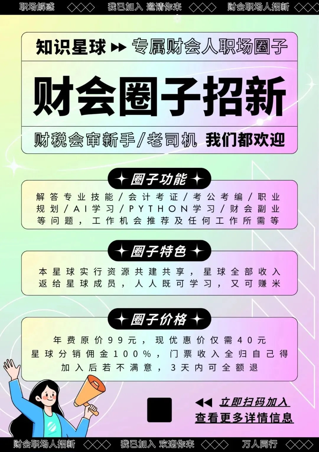 如果你在工作职场中有问题没人问,工作没人教没人带,也想获得一份额外的收入,欢迎加入我们的财会职场人知识星球,这是一个既可以学习,又可以赚钱的圈子。