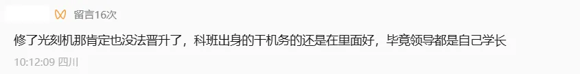 而你去修光刻机,难道就没人为难你吗?况且,那些领导很可能还不是你学长,甚至连师兄弟关系都没有,更加是路边一条,一辈子就修那光刻机。而机务,有了一线工作经验之后,还有机会去二线部门,光修光刻机可以吗?
