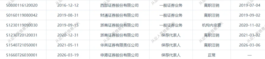 华英证券/国联民生一保荐代表人跳槽申港证券