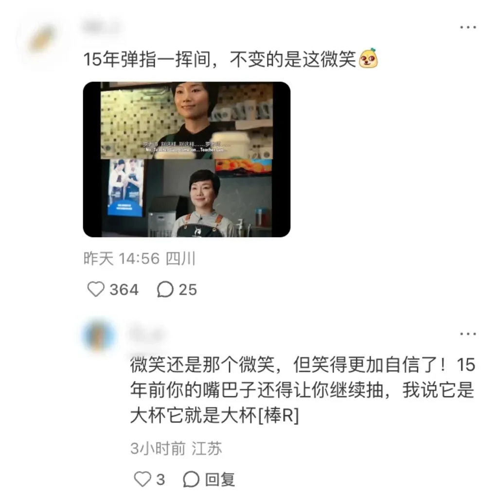 老罗记忆里的女店员“跳槽”来到了瑞幸,这次穿上瑞幸的工作服,十五年弹指一挥间,不变的还是女店员的职业假笑。
