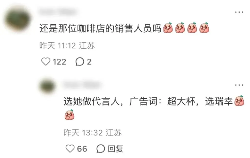 看热闹的网友还给瑞幸又献上了一计——选女店员做代言人,广告词就是“超大杯,选瑞幸”。