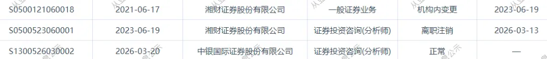 >湘财证券一分析师跳槽中银国际