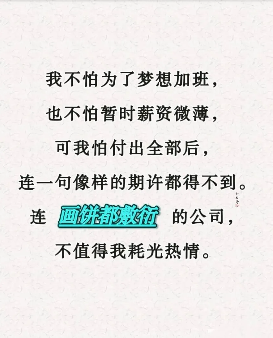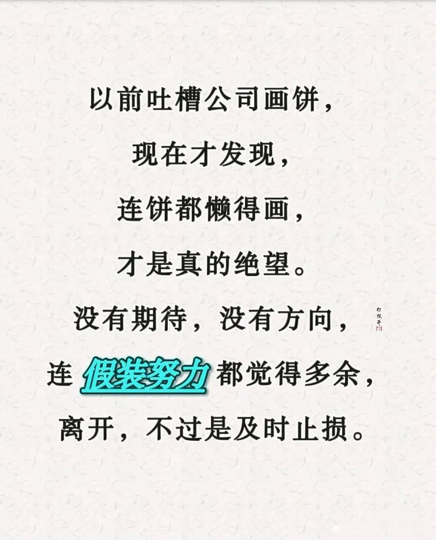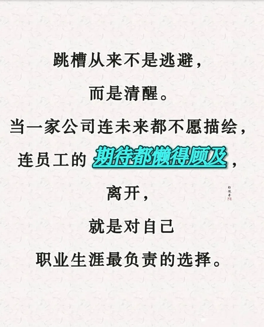 跳槽不是冲动,而是失望累积后的必然选择。画饼做梦有了痛苦更有心寒的还有连敷衍的承诺都不肯给,既然不再有希望,不如及时止损走向自己想要的地方
