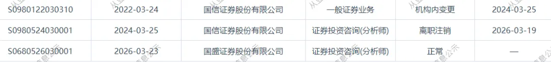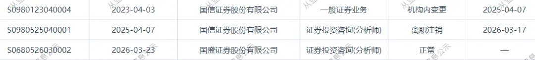 1、近日证券从业系统显示,徐文辉,3月19日从国信证券离任,3月23日加入国盛证券。徐文辉,国信证券电力设备新能源行业分析师。