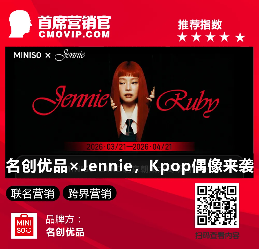 名创优品官宣与 BLACKPINK 成员 Jennie 达成深度个人联名,以 Jennie 首张个人专辑《Ruby》为核心灵感,精准抓取其标志性红黑视觉符号与 “甜酷” 美学,推出「Jennie Ruby」系列周边。