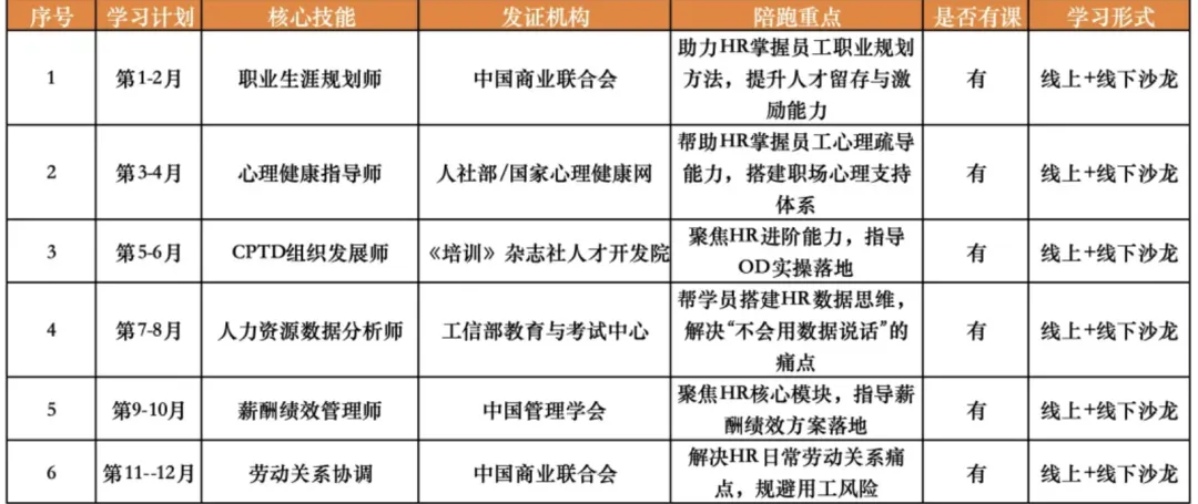 3980 元 = 全年系统化成长 + 职业全方位突破每两月吃透 1 门核心技能,全年解锁6 大职场硬实力2026 不内耗、不瞎忙、不踩坑用专业 + 路径 + 背书,实现认知升级与职场跃迁从普通 HR,变成企业离不开的核心人才。现在报名即送:4月18-19日职业生涯规划师认证