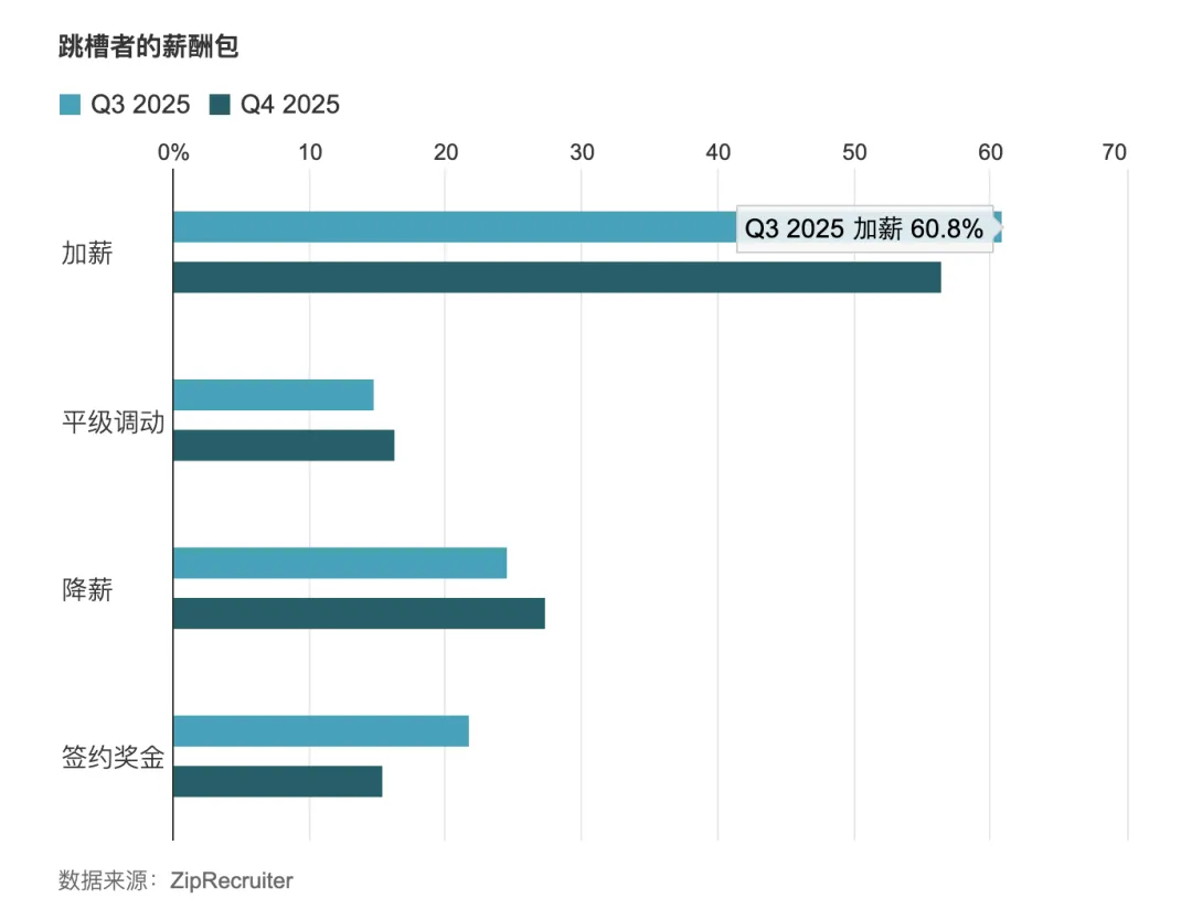 尽管部分美国人的收入仍在增长,但联邦数据显示,自2022年下半年以来,整体薪资增速已持续放缓。根据ZipRecruiter的数据,近期跳槽的人中,超过四分之一接受了降薪,16.3%的人接受了平级调动。