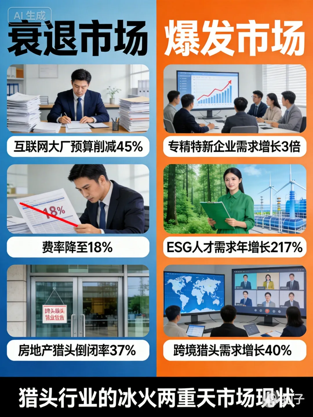 这种"冰火两重天"的表象之下,是技术革新、市场需求升级与竞争格局重构共同引发的结构性危机与机遇。本文基于最新行业数据与调研报告,从技术驱动、市场分化、模式革新三个维度,客观分析猎头行业的未来发展趋势。