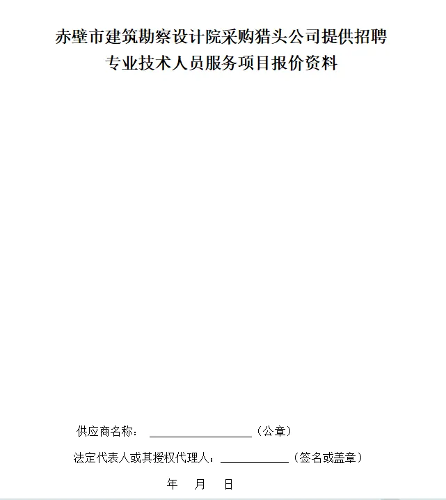 一、项目名称:赤壁市建筑勘察设计院采购猎头公司提供招聘专业技术人员服务项目。