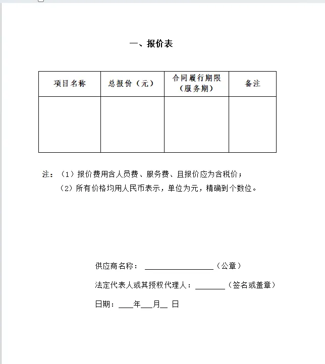 报价费用含人员费、服务费,且报价应为含税价。