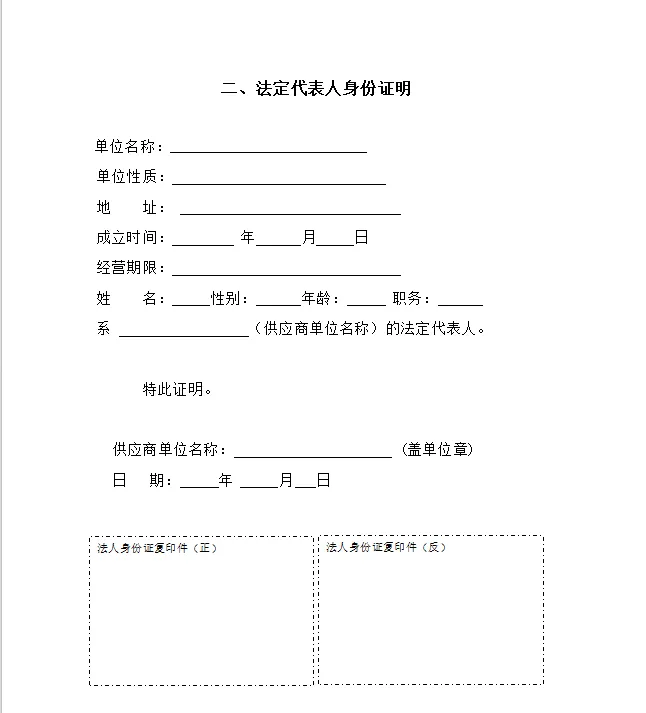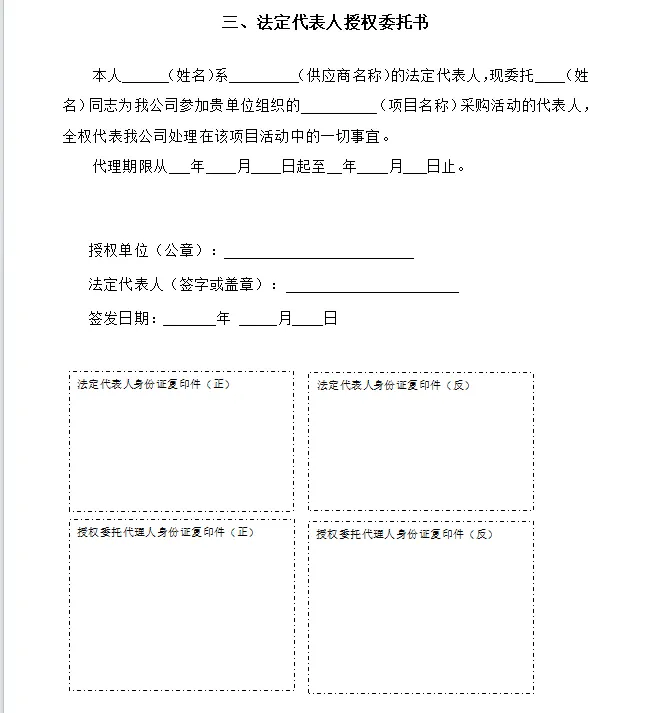 (2)参与该项目报价的供应商,如是法定代表人参与的提供法定代表人身份证明,如是委托人参与的提供法定代表人授权委托书。