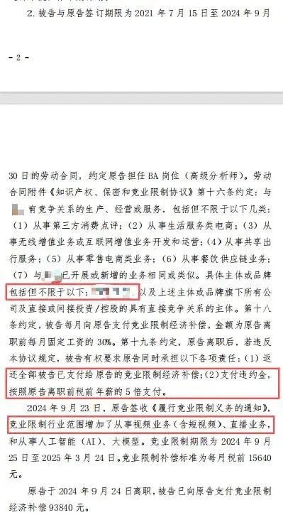 竞业限制行业范围增加了从事视频业务(含短视频)、直播业务,和从事人工智能(AI)、大模型;