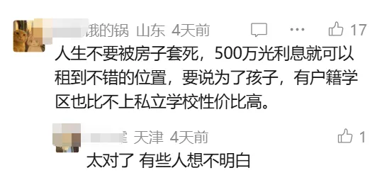评论区有个扎心的观点:一套500万的房子,光贷款利息,就够在不错的地段租一辈子房。说白了,很多人不是被生活逼到绝路,而是被“必须买房”的执念,逼进了死胡同。一旦房子成了人生的唯一核心,所有的选择都会变得被动而畸形。