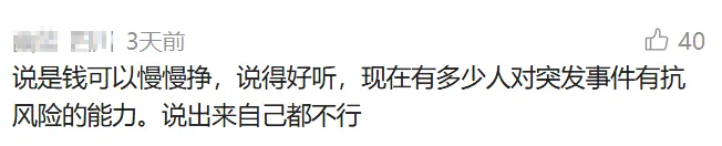 这事一曝光,评论区瞬间炸开了锅。有人力挺老公,说被房贷逼到绝境,不拼一把别无选择;也有人站在媳妇这边,直言健康和家庭比钱重要,钱可以慢慢赚,人垮了就彻底没希望了。还有人一语中的:别让一套房子,套死自己的一辈子。