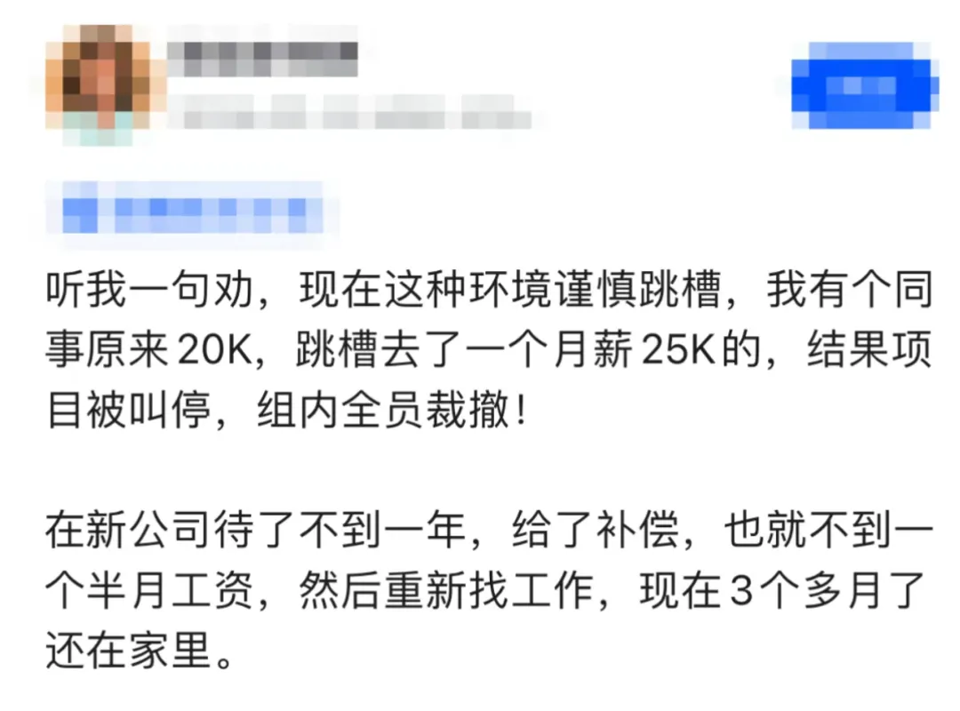 最近刷到一个帖子,有人说现在这种环境要谨慎跳槽,然后讲了他同事的故事。