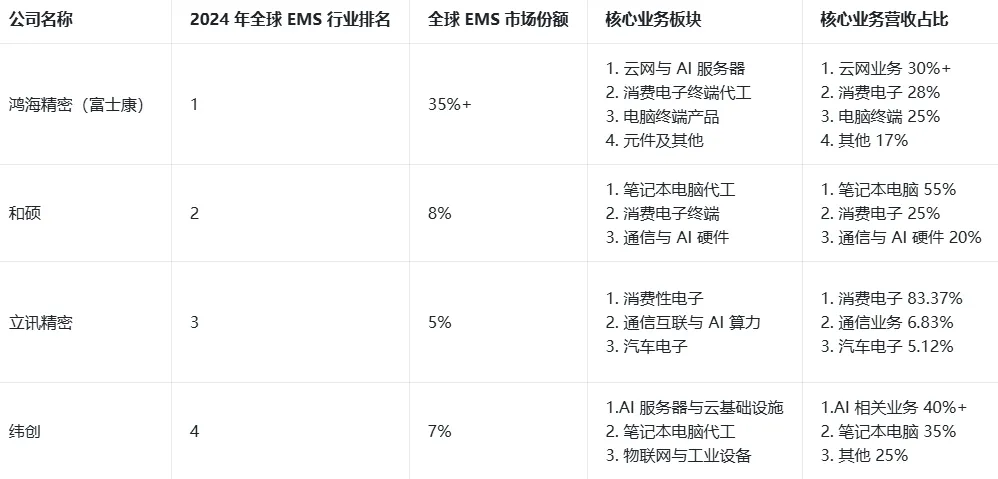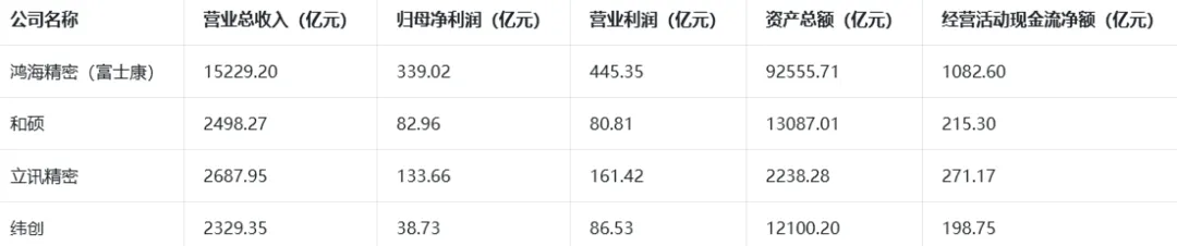 附录:鸿海精密 / 富士康、和硕、纬创的核心数据对比核心财务规模指标对比表