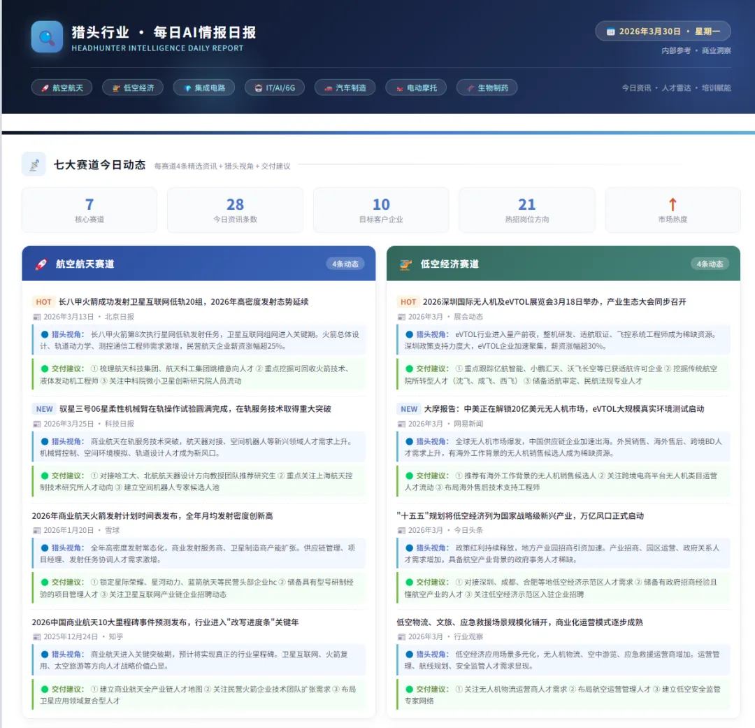【猎头行业 AI日报·3.30】六大赛道每日情报 早间播报