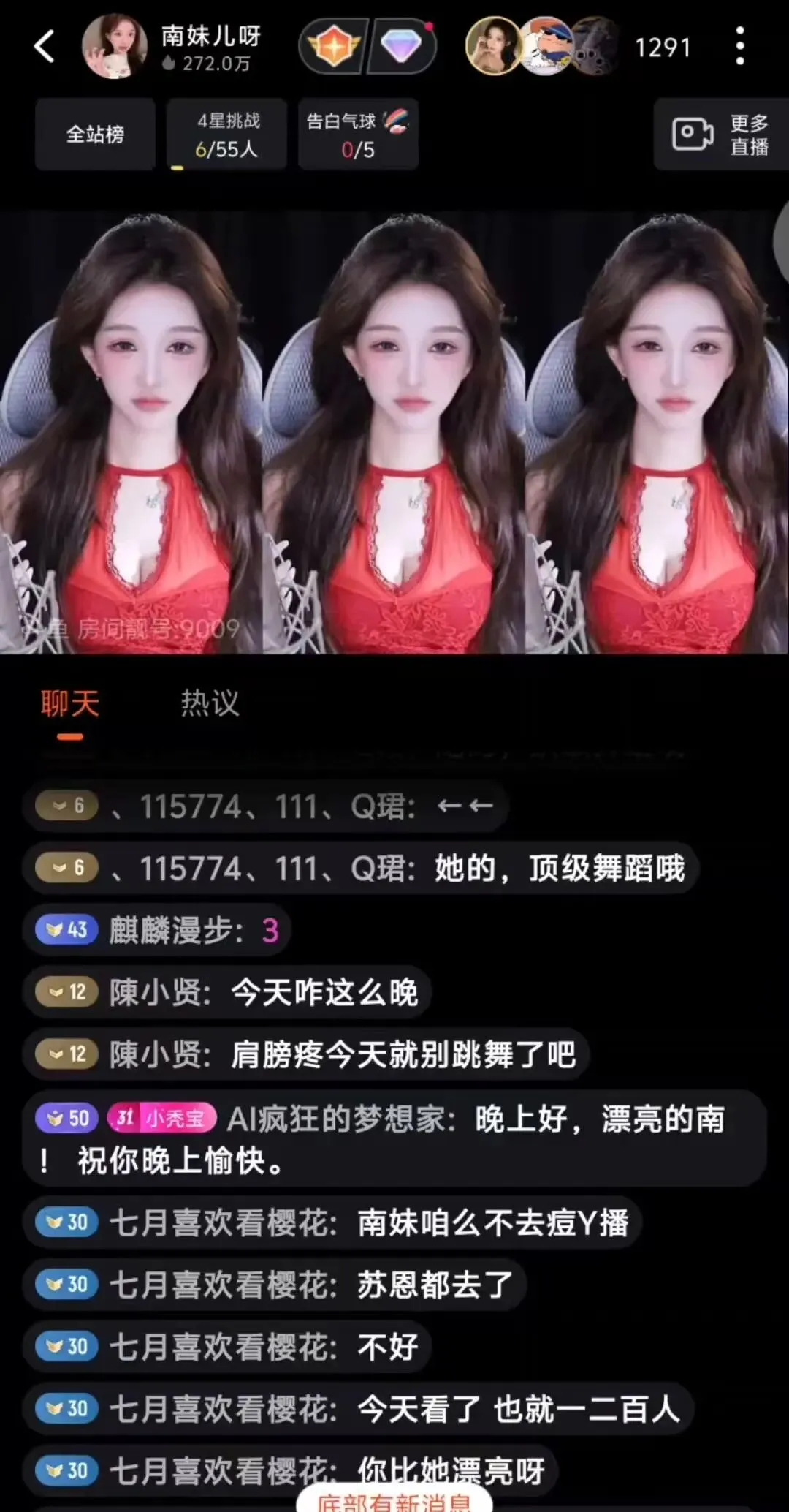 水友显然不死心,马上搬出例子:“苏恩都去了。”南妹儿一听,顺势反问:“那她播的好吗?”水友老实回答:“不好,今天看了,也就一二百人。”南妹儿立刻接话:“那不就是了,你看,比我跳舞好的去了都播不好,我为什么能播的好?还没有在斗鱼的时候人多吧!”