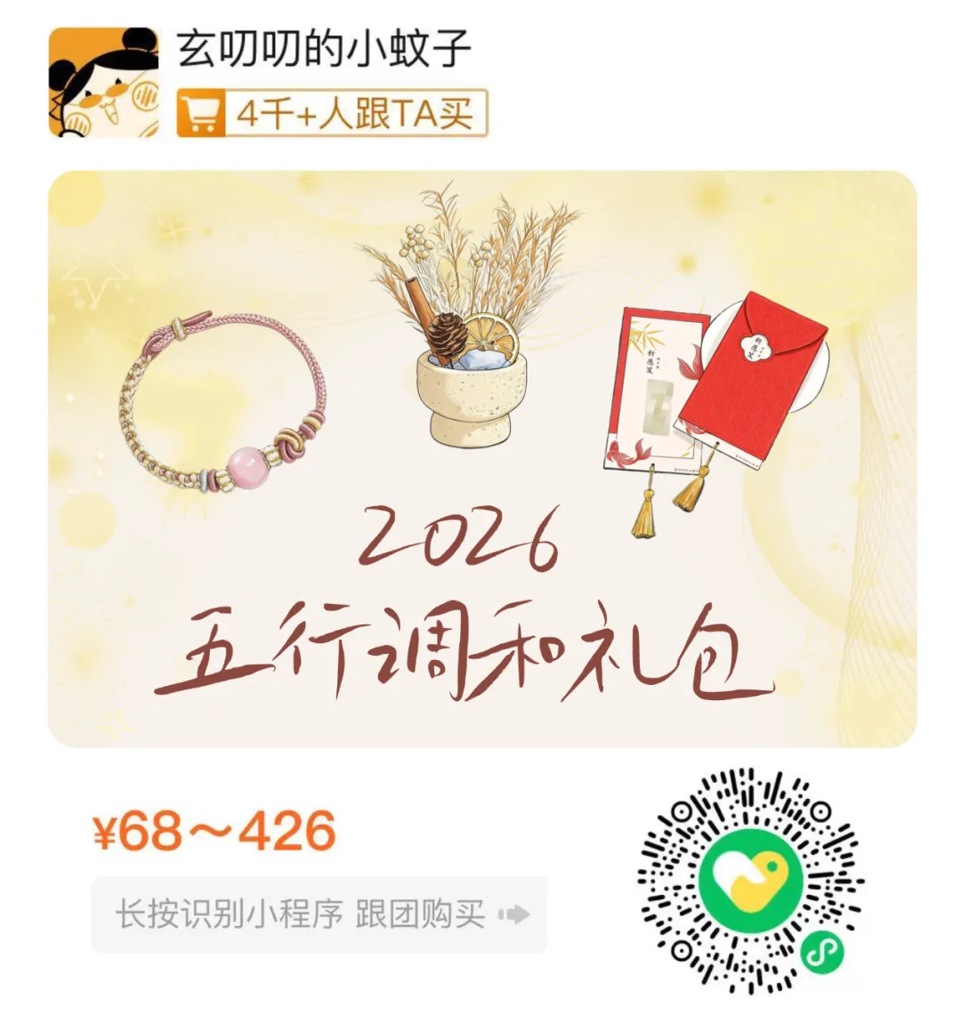 针对这个情况,蚊子从高性价比+高定制化出发,设计了 2026五行调和礼包 ,为你提供个性化、全维度的丙午年解决方案!