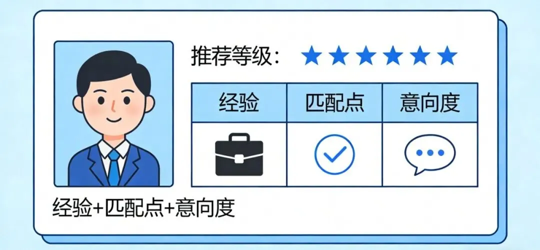✅真实小技巧:按候选人实际情况标注推荐等级,不夸大;只抓“经验+匹配点+意向度”,3秒让HRget核心。