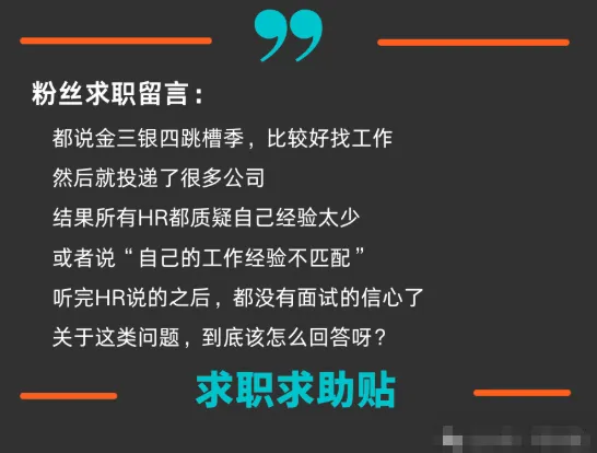 他说趁着金三银四跳槽季,投了很多公司,结果所有HR给他的反馈都差不多,经验太少,或者说"工作经验不匹配"。他听到这种反馈听多了,连面试的信心都快没了,来问应该怎么应对这类问题。