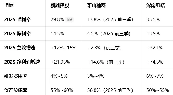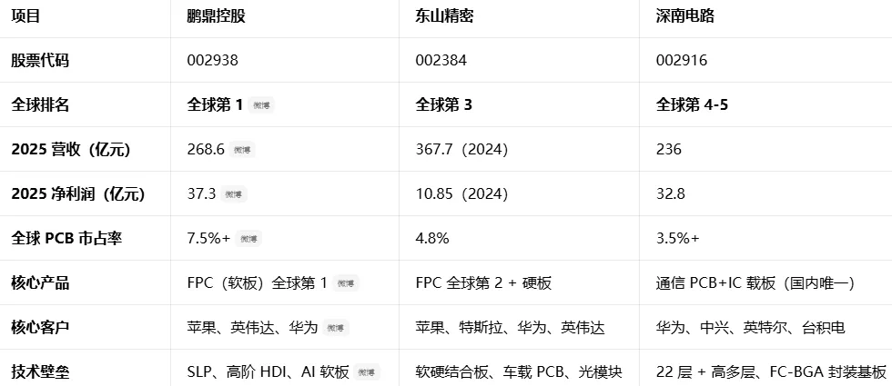 附录:东山精密、鹏鼎控股、深南电路(当前 PCB 行业前三)的核心数据对比一、公司基本盘 & 行业地位(2024-2025)