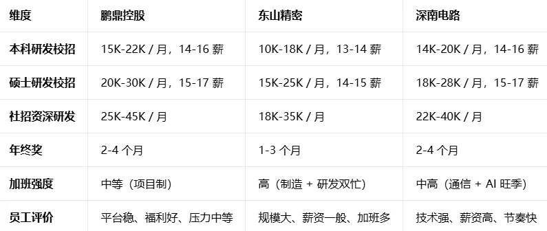 薪酬竞争力在制造业中处于中等水平,核心研发岗薪酬显著低于消费电子与半导体行业头部企业,福利体系相对基础。