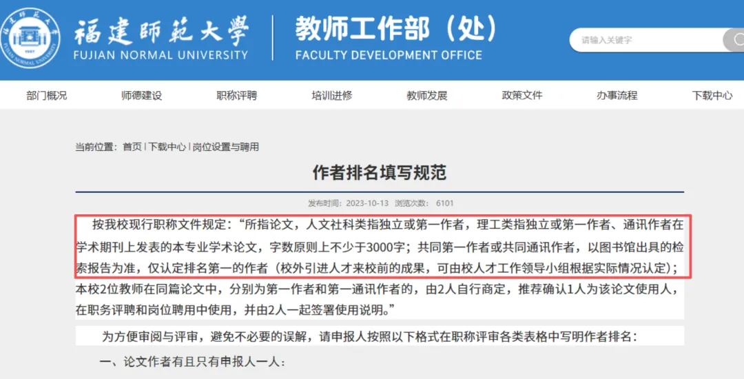 福建省某大学职称文件规定:“所指论文,人文社科类指独立或第一作者”,“共同第一作者或共同通讯作者,以图书馆出具的检索报告为准,仅认定排名第一的作者。”