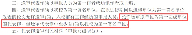 杭州某大学要求:入校前有工作经历的申报人员,允许送审原单位为第一完成单位的代表作,但送审代表作中至少有1篇以我校为第一署名单位。