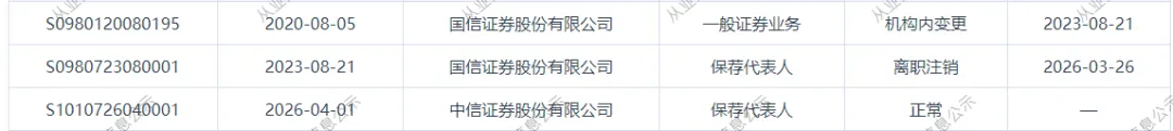 近日,证券从业系统显示,乔光炜,3月26日从国信证券离任,4月1日加入中信证券。