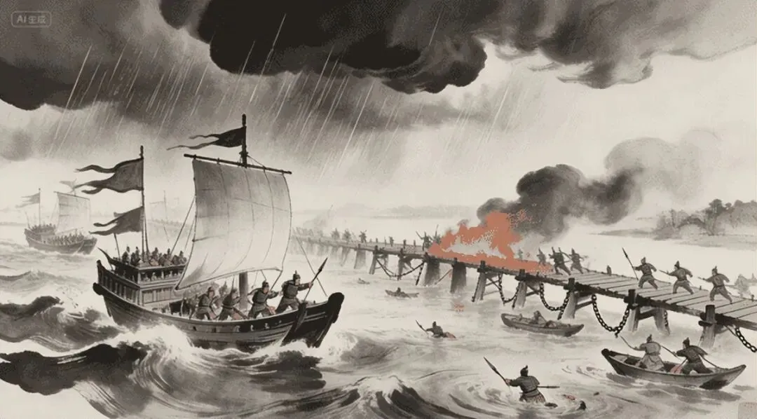 天监六年,北魏派中山王元英率十万大军南下,包围钟离——南北朝时期最惨烈的一场战役。裴邃跟着韦睿出征,负责秘密建造"没突舰",在水中冲击敌军。淮水暴涨,裴邃率水师直冲魏军浮桥,《南史》记载"杀溺死者各十余万"。魏军大溃,元英狼狈而逃。这一仗奠定了他"南梁名将"的地位,以功封夷陵县子。
