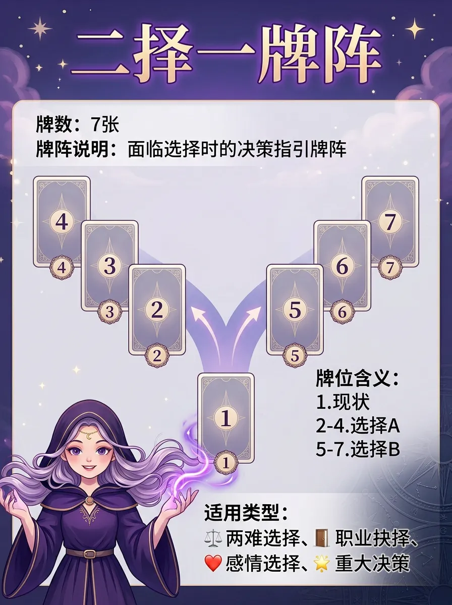最近金三银四跳槽季,我的后台直接被姐妹的留言炸了:“两个 offer 选哪个?一个国企稳定钱少,一个私企钱多加班多,纠结到失眠”“考研还是考公?两条路都有人说不好,我完全不知道怎么选”“两个男生都在追我,一个适合结婚一个有感觉,我到底该选谁?”人生最磨人的,从来不是没路可走,而是两条路摆在你面前,二选一的两难,怕选错一步,后悔一辈子。今天就给所有选择困难症的姐妹,掏一个塔罗师私藏的、专门解决两难抉择的王牌牌阵 ——二择一牌阵,小到今天吃什么,大到跳槽结婚,所有选择问题,它都能给你最清晰的指引!一、先搞懂:二择一牌阵到底牛在哪?