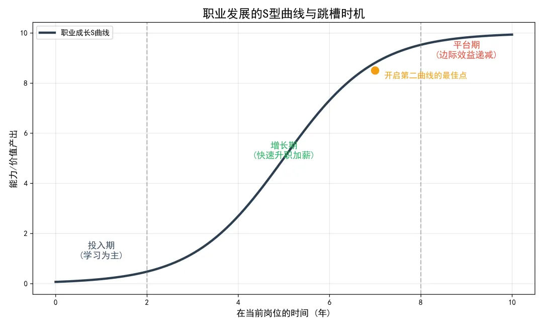 大多数人,都是等到平台期过了,甚至已经开始衰退了——比如公司开始裁员、自己被边缘化了——才想着要走。但这时候,你的市场价值已经在下滑了,你是被迫逃离,而不是主动选择。