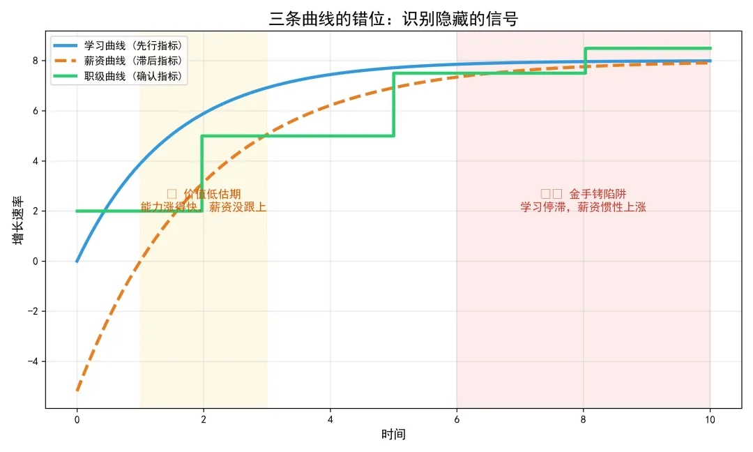 很多人以为,职业发展是一条线。但实际上,它是由三条不同速度的线组成的:学习曲线、薪资曲线、职级曲线。
