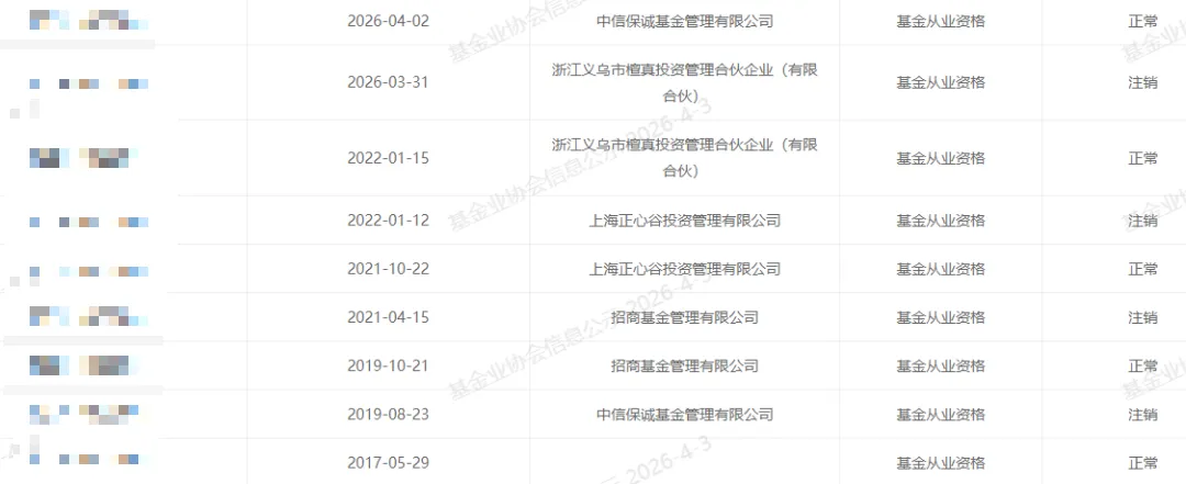 >浙江义乌市檀真投资一员工跳槽中信保诚基金