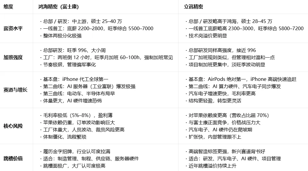附录:鸿海精密(富士康)vs 立讯精密 核心对比表