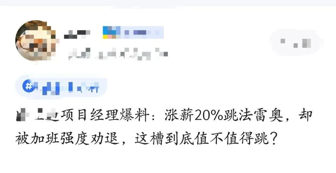 涨薪20%的跳槽诱惑摆在眼前,却要面对远超预期的加班强度,到底要不要跳?这道戳中无数基层从业者的职场选择题,核心从来不是对错,而是你愿意为高薪牺牲多少个人底线。