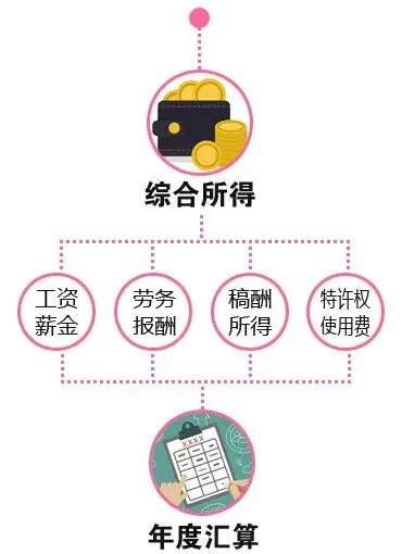 个人所得税法规定“居民个人取得工资、薪金所得、劳务报酬所得、稿酬所得、特许权使用费所得(此四项统称综合所得),按纳税年度合并计算个人所得税”。