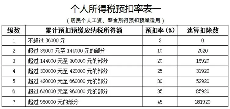 假设现在有A公司员工小李,每个月收入减除三险一金、费用(每月5000)之后工资为10000元(这就是每月的应纳税所得额),那么如果小李没有任何跳槽行为,全年都在A公司上班,全年的月应纳税额和年度合计应纳税额如(计算表一)所示↓↓↓
